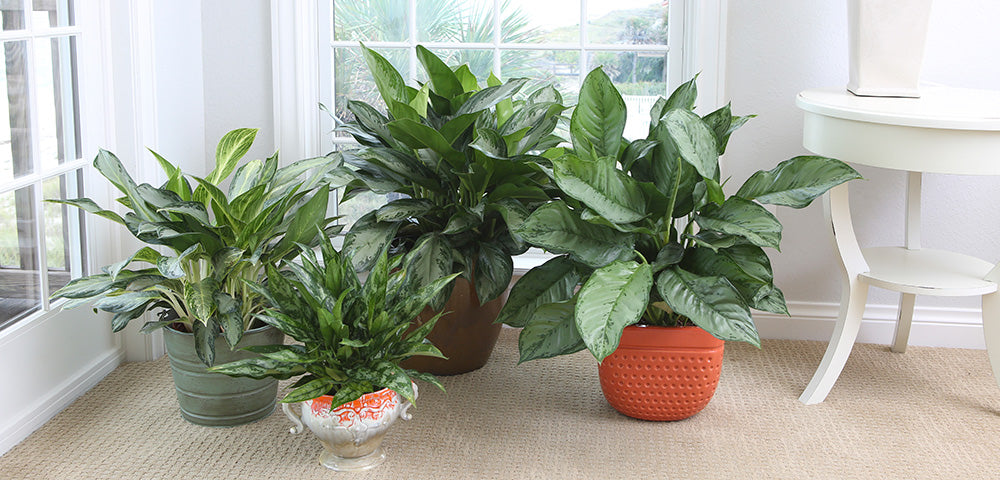 You can grow Chinese evergreen just about anywhere in your home — it tolerates low light well, but also grows well in bright spots. It doesn’t even need natural light to thrive — Chinese evergreen does just fine in offices with fluorescent lighting.